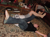 After a yummy breakfast of the traditional candy cane pastries and breakfast casserole, we vegged for way too long before getting cleaned up for the day. That night, however, we burned off almost all of those breakfast calories with some serious arm and leg wresting.